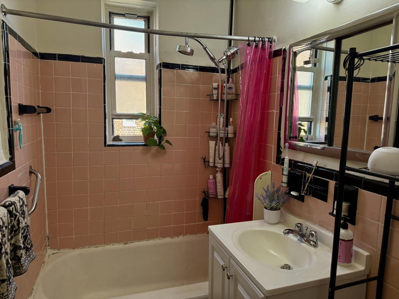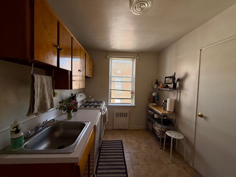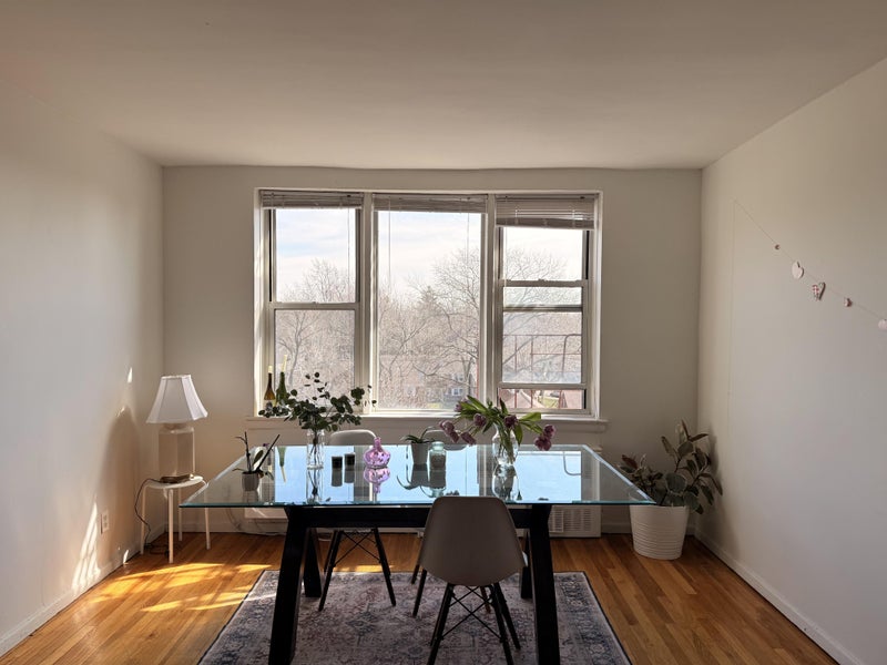 Our apartment is adorable with a bunch of natural light, a big entrance, and livingroom/dining room. We have four extra storage closets and a nice kitchen with lots of storage, a full fridge, and a new oven and stove.