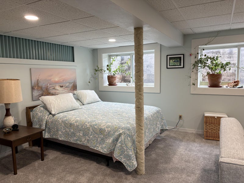 Enjoy this large bedroom suite in the lower level of my home in the village of Little Chute. Sky and Ruby are my feline companions who share my home. I am an artist and have a small gallery in the garage. We share the kitchen upstairs. I have hosted exchange students in the past and enjoy meeting new people. I also host ukulele jams here weekly on Friday afternoons. I look forward to meeting you!